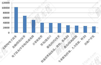 去年同期排位第四的金融/投资/证券行业在今年上升到了第二的位置,计算机软件行业则从去年的第六位上升到了今年的第四位。